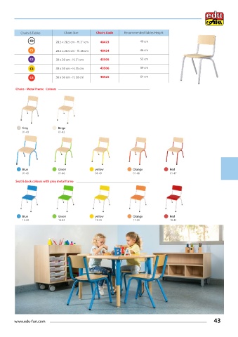 Chairs & Tables Chairs Size Chairs Code Recommended Tables Height