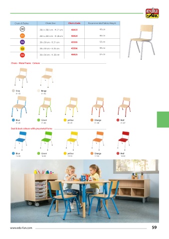 Chairs & Tables Chairs Size Chairs Code Recommended Tables Height