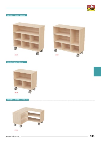 W 103.5 x D 40 x H 96 cm 45451 45450 W 70 x D 40 x H 69 cm 45443 W 103.4 x D 103.4 x H 69 cm 67375 www.edu-fun.com 103